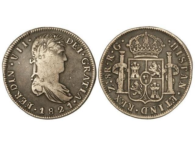 SPANISH MONARCHY: FERDINAND VII - 8 Reales. 1821. ZACATECAS. R.G. Pátina oscura. Cal-697. (MBC).