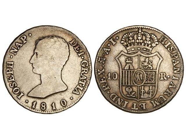 SPANISH MONARCHY: JOSEPH NAPOLEON - 10 Reales. 1810. MADRID. A.I. RARA. Cal-39. BC/BC+.