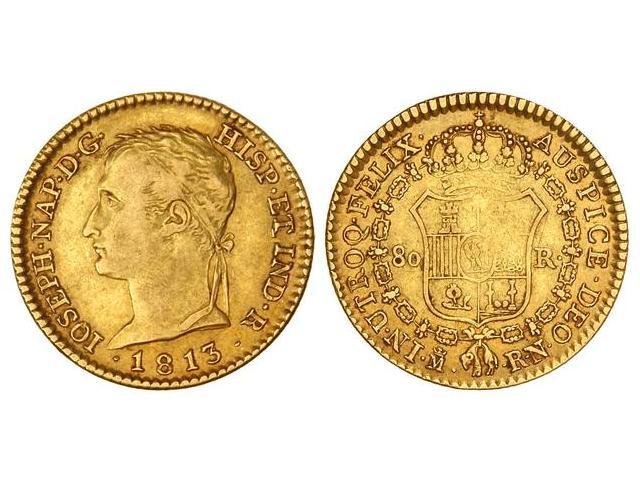 SPANISH MONARCHY: JOSEPH NAPOLEON - 80 Reales. 1813. MADRID. R.N. (Acuñación algo floja en centro). MUY ESCASA. Cal-12. MBC+.