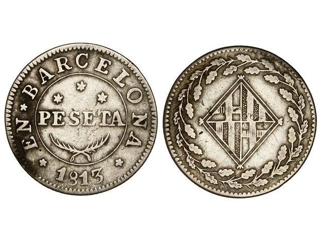 SPANISH MONARCHY: NAPOLEONIC OCCUPATION OF CATALONIA - 1 Peseta. 1813. BARCELONA. Cal-49. MBC.