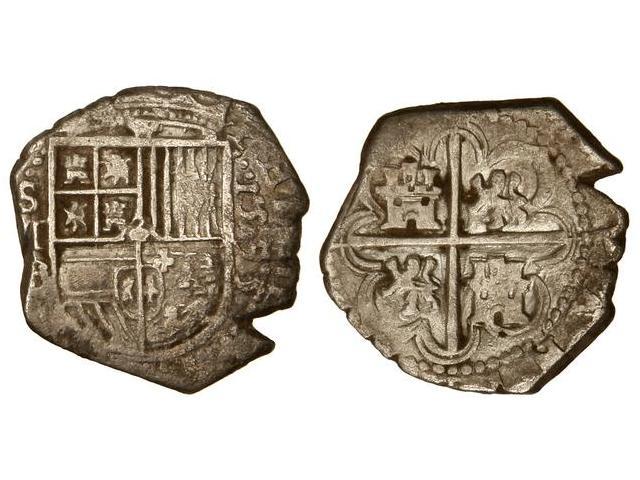 SPANISH MONARCHY: PHILIP II - 2 Reales. 1595. SEVILLA. B. 6,70 grs. Cal-548. MBC/MBC-.