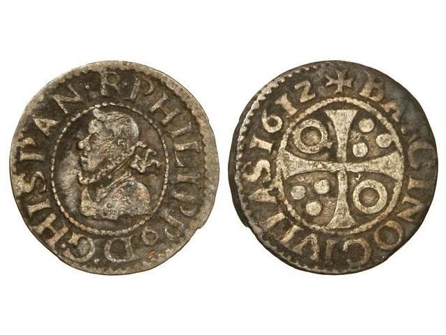 SPANISH MONARCHY: PHILIP III - 1/2 Croat. 1612. BARCELONA. Cal-535. MBC.