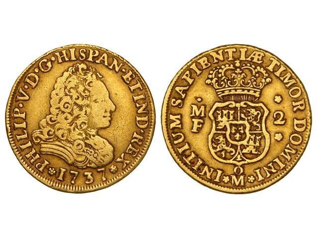 SPANISH MONARCHY: PHILIP V - 2 Escudos. 1737. MÉXICO. M.F. RARA. Cal-362. MBC-/MBC.