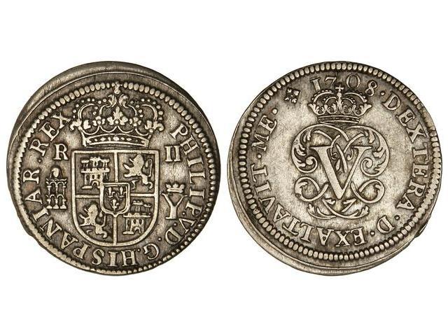 SPANISH MONARCHY: PHILIP V - 2 Reales. 1708. SEGOVIA. Y. (Levemente alabeada). Cal-1382. MBC+.