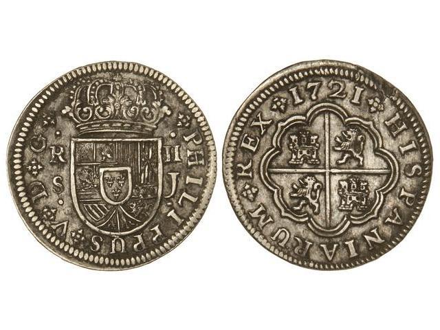 SPANISH MONARCHY: PHILIP V - 2 Reales. 1721. SEVILLA. J. (Pequeño defecto de acuñación en reverso). Cal-1423. EBC-.