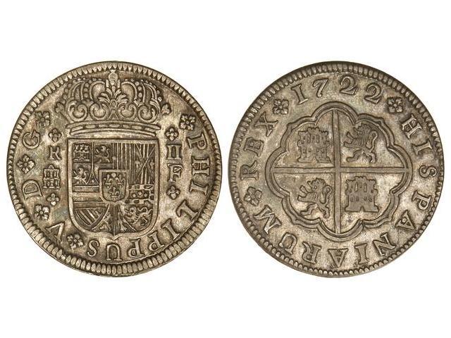 SPANISH MONARCHY: PHILIP V - 2 Reales. 1722. SEGOVIA. F. Preciosa pátina irisada. Cal-1400. MBC+/EBC-.