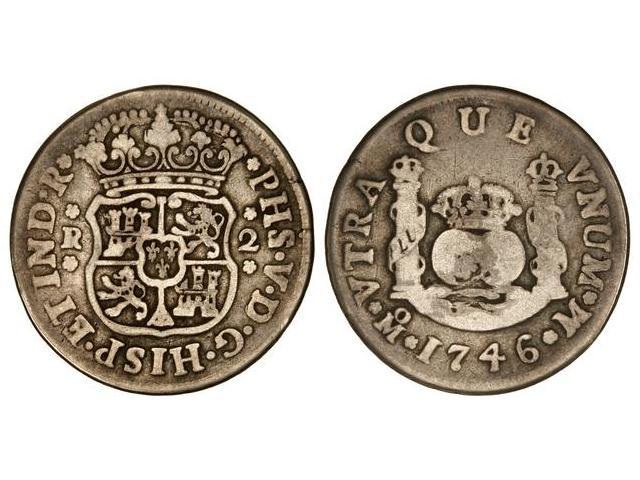 SPANISH MONARCHY: PHILIP V - 2 Reales. 1746. MÉXICO. M. Columnario. Cal-1299. BC+.