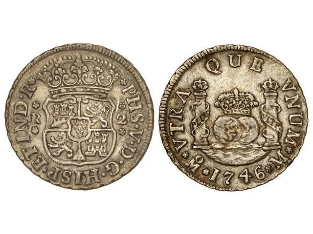 SPANISH MONARCHY: PHILIP V - 2 Reales. 1746. MÉXICO. M. Columnario. Preciosa pátina. Cal-1299. EBC.