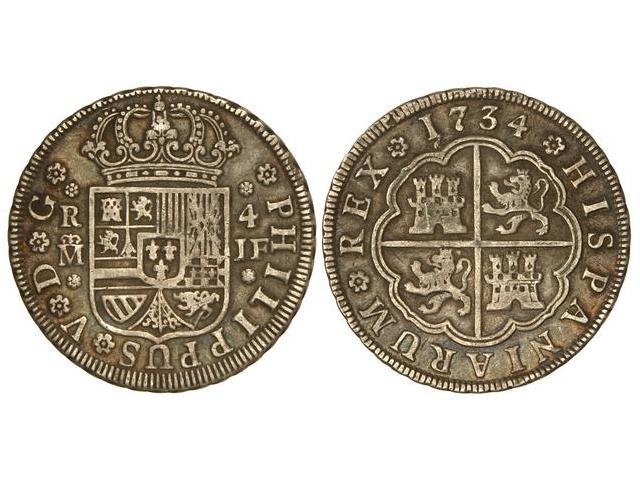 SPANISH MONARCHY: PHILIP V - 4 Reales. 1734. MADRID. J.F. Pátina. Pátina. (Pequeñas rayitas). Cal-1002. MBC.