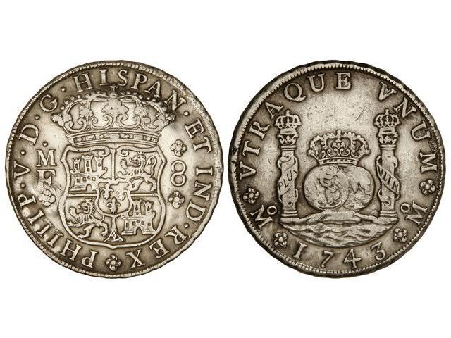 SPANISH MONARCHY: PHILIP V - 8 Reales. 1743. MÉXICO. M.F. Columnario. (Rayita en reverso). Cal-795. (MBC).