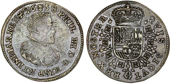 Rev: REX QVIS SICVT NOSTER Crowned shield, surrounded by the collar of the Golden Fleece.