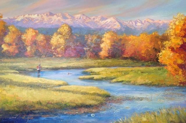 "Mountains with Fisherman" 30 x 24 original Acrylic on Canvas