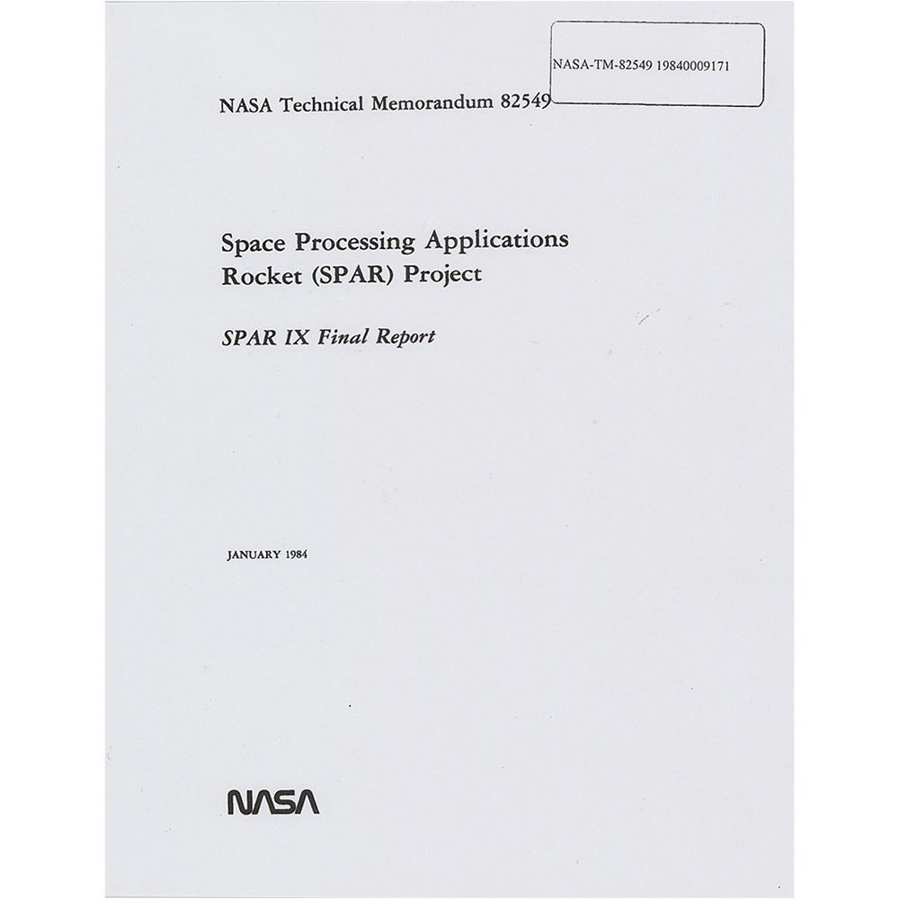 According to NASA Technical Memorandum 8549, the SPAR IX (R-17) science payload consisted of four materials experiments, the Experiment Support Module (ESM), and the Abbreviated Measurement Module (AMM). The SPAR IX Nike-Black Brant VC rocket lifted off the launch pad at WSMR on January 20, 1981. The launch was successful and the payload was recovered intact. Payload power was applied to all experiments as planned, and all experiments operated within the predicted near zero gravity. The report concluded that on SPAR IX "much useful data and information were accumulated for directing and developing experimental techniques and investigations toward and expanding, beneficial program of materials processing in the Shuttle era."