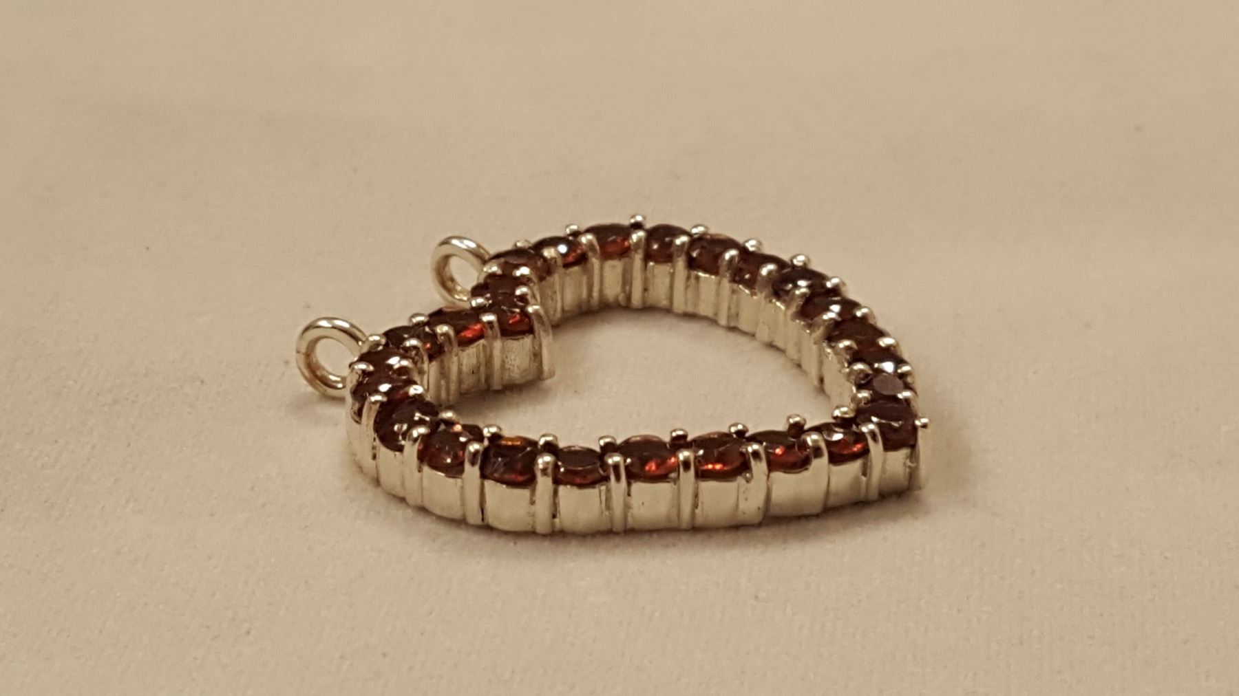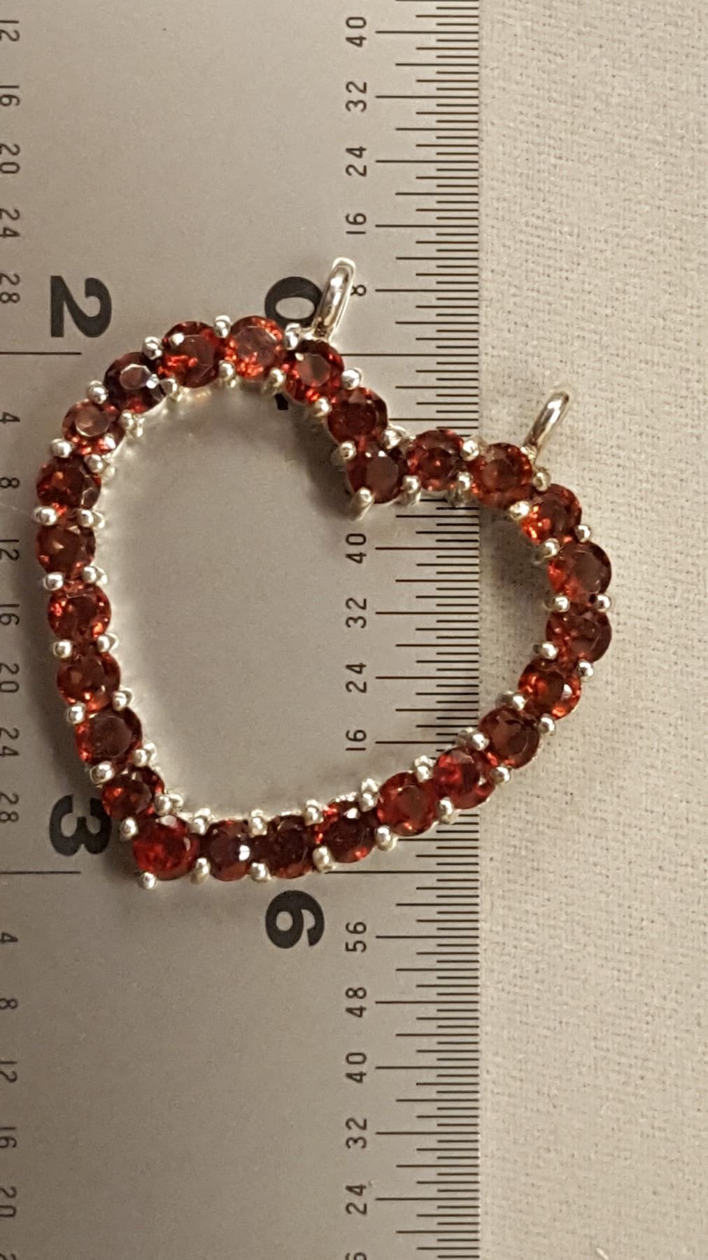 SPARKLING 8.35 CT NATURAL RED GARNET HEART PENDANT. THESE NEAR FLAWLESS GEMSTONES ARE MOUNTED IN SOLID .925 STERLING SILVER. 25 CTTW OR 5. GRAMS