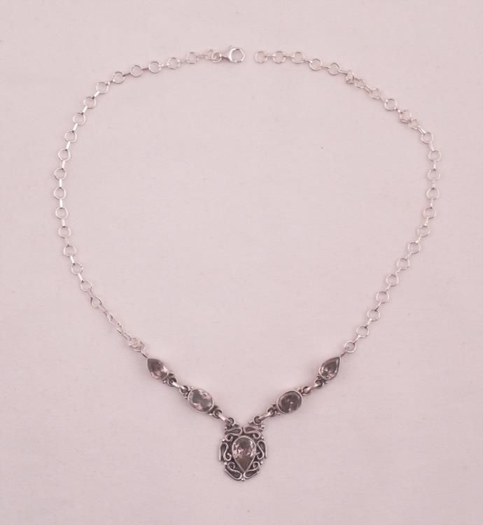 SPARKLING BRIGHT * PINK TOPAZ PENDANT 33 CTS MOUNTED IN .925 STERLING SILVER 17". 106 CTTW * HEATED . HEAVY SILVER