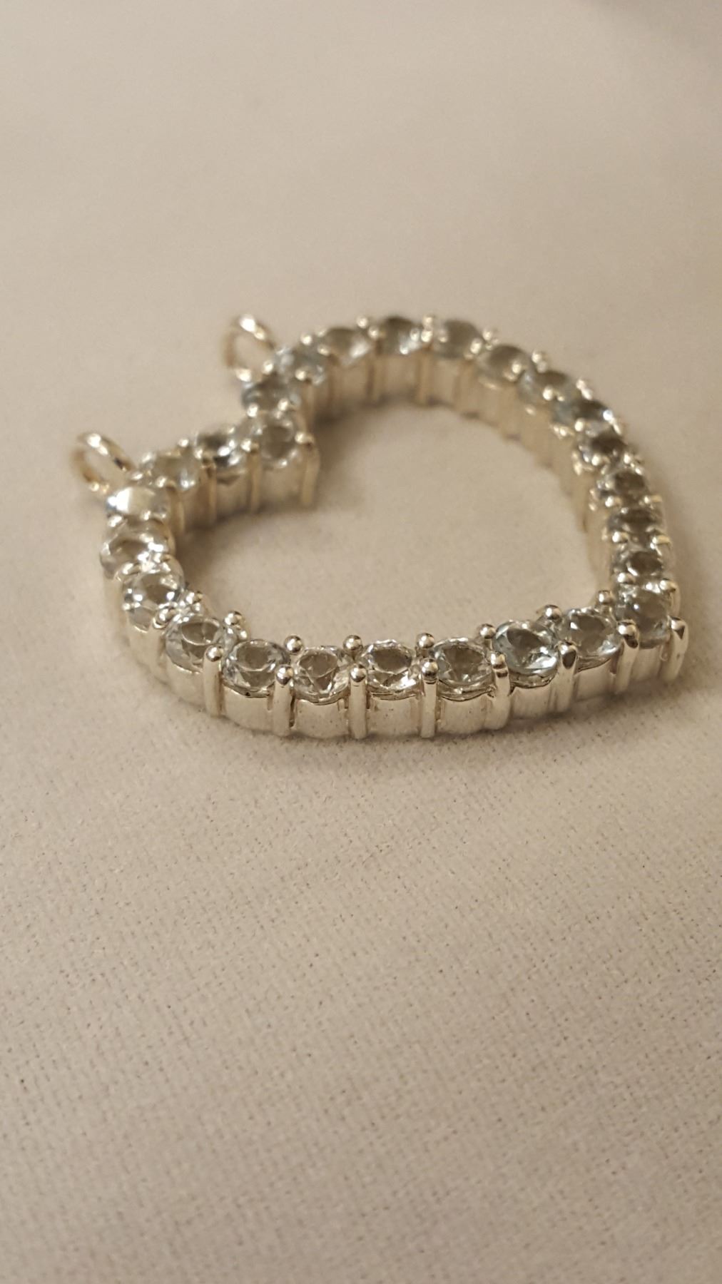 ULATRA SPARKLING SKY BLUE TOPAZ HEART PENDANT. THESE NEARFLAWLESS GEMSTONES ARE MOUNTED IN SOLID .925 STERLING SILVER. 26 CTTW OR 5.2 GRAMS