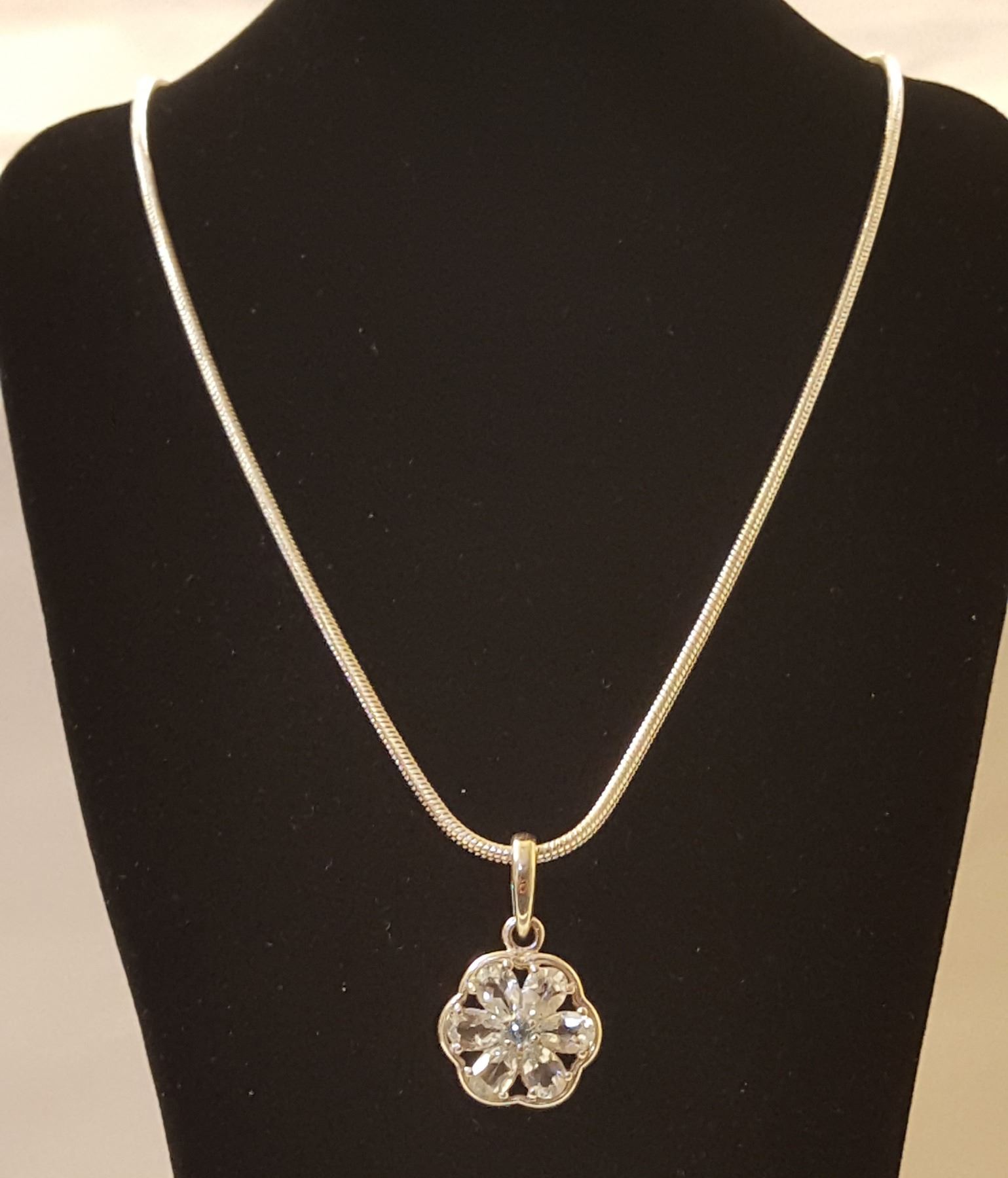 SPARKLING SKY BLUE TOPAZ PENDANT. THESE NEAR FLAWLESS GEMSTONES ARE MOUNTED IN SOLID .925 STERLING SILVER. 65 CTTW OR 12.8 GRAMS