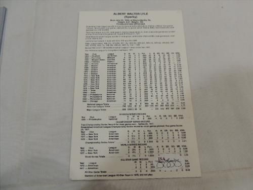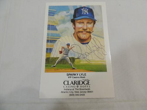 SPARKY LYLE SIGNATURE AUTOGRAPH ON PHOTO CARD. COA STICKER FROM JSA. AS SHOWN. VIEW PICTURE FOR DETAIL. PLEASE BE ADVISED, AND INFORMED REGARDING SIGNATURES OR AUTOGRAPHS THAT WE SELL AT AUCTION: WE ARE NOT AUTHENTICATORS, AND WE DO NOT AUTHENTICATE, OR VALIDATE ANY AUTOGRAPHS OR SIGNATURES THAT WE OFFER AT AUCTION. SOME AUTOGRAPHS OR SIGNATURES MAY COME WITH AN AUTHENTICATION FROM ANY ONE OF LITERALLY HUNDREDS OF AUTHENTICATORS ACROSS THE COUNTRY, AND AROUND THE WORLD. WE DO NOT ENDORSE ANY AUTHENTICATOR, NOR DO WE GUARANTEE THAT ANY AUTOGRAPH OR SIGNATURE IS AUTHENTIC, OR THAT IT WILL PASS AUTHENTICATION BY ANY AUTHENTICATOR. ALL AUTOGRAPHS OR SIGNATURES ARE SOLD