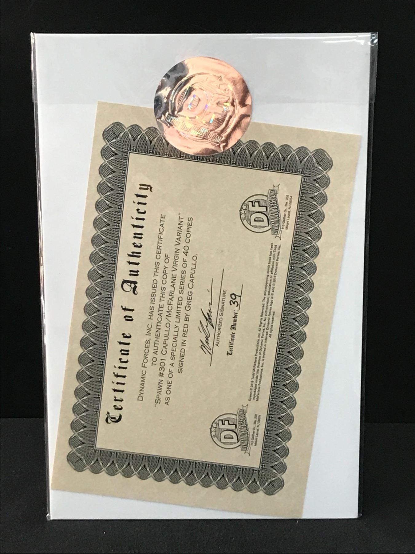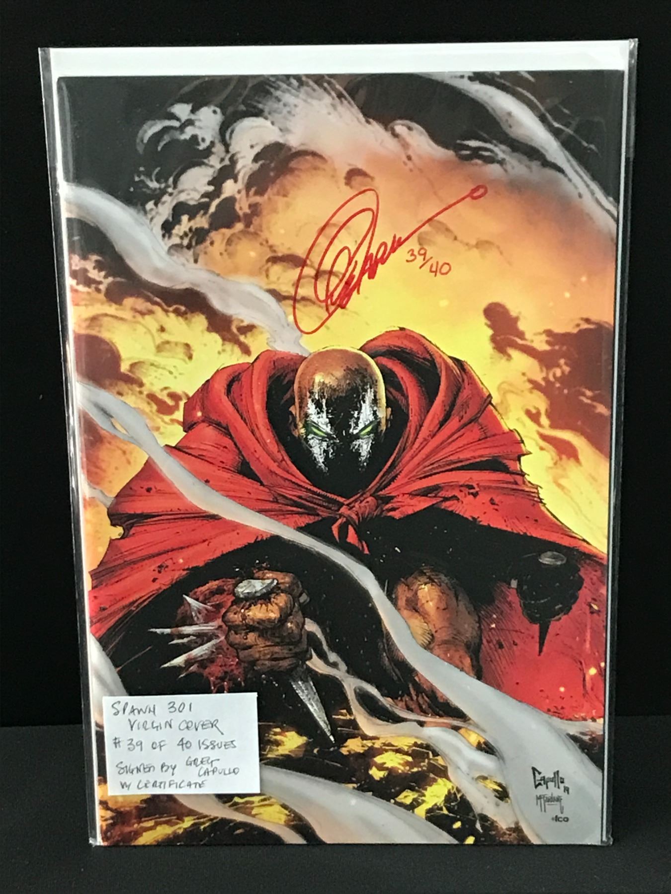 SPAWN #301 VIRGIN COVER #39 OF 40 ISSUED SIGNED BY GREG CAPULLO WITH CERTIFICATE