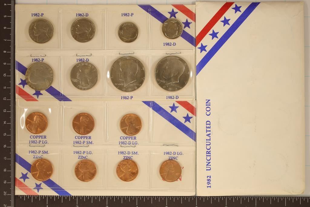 1982-7 VARIETIES LINCOLN CENT SET (UNC) IN ENVELOPE