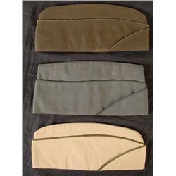 510139 - Lot 3 WWII Brown, Green, Tan Wool Army Side Caps HatsUniversallive