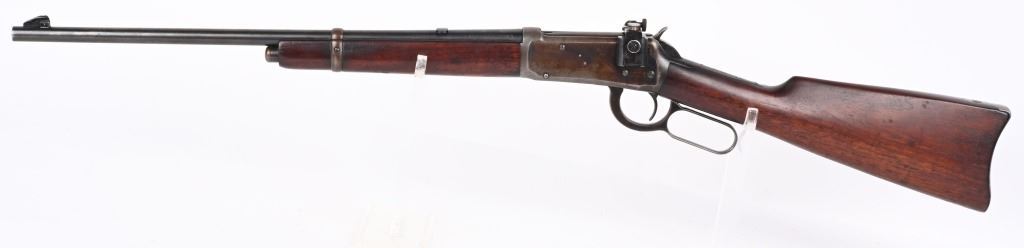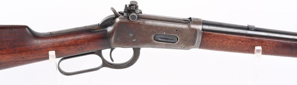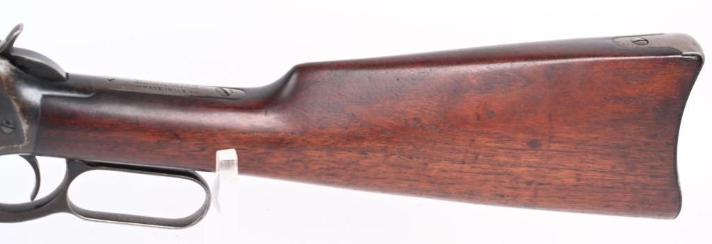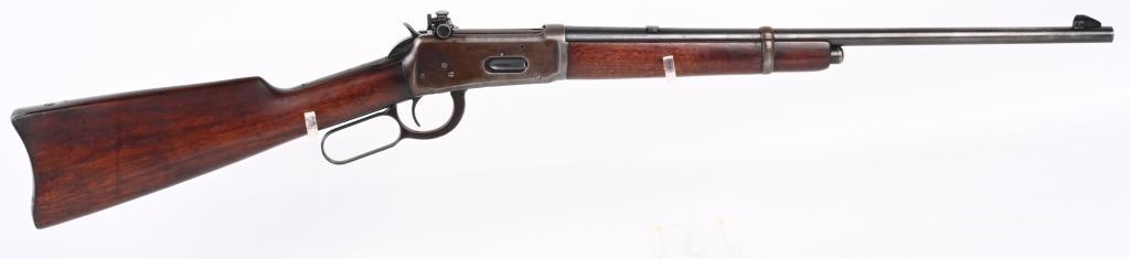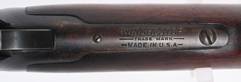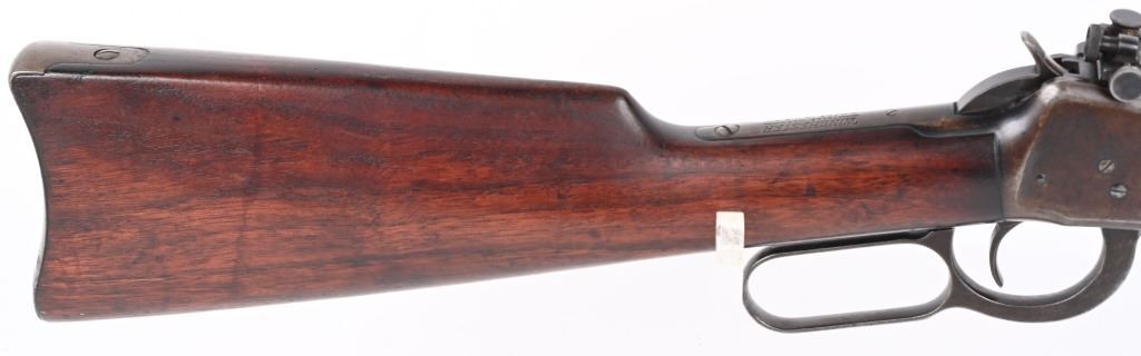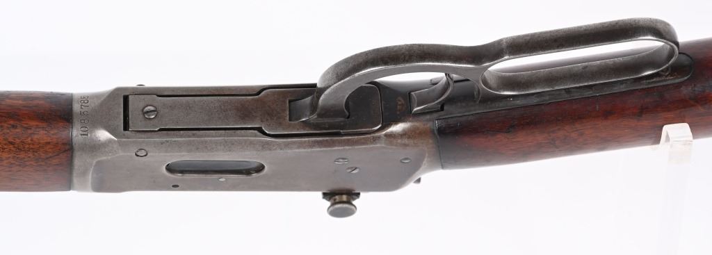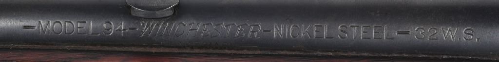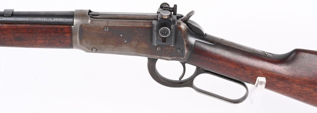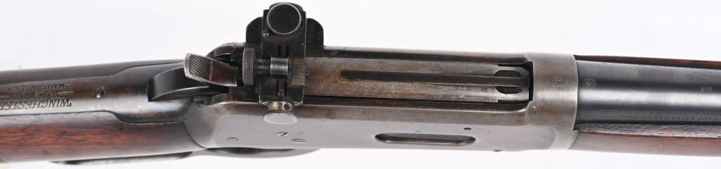 SERIAL NUMBER 1085785. BARREL 20". CALIBER 32WS. MADE IN 1930. Special order half magazine, replaced blade on front sight, rear sight filled, Lyman receiver sight added, walnut stocks, steel carbine butt plate, blue finish. Condition. 70% thinning blue on barrel. Frame is basically patina. Stocks are excellent and proud to metal. Bore is strong & bright. C&R
