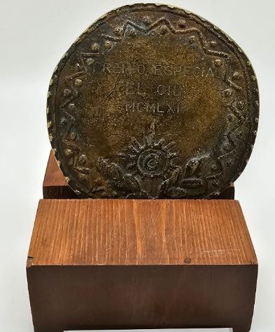 SPECIAL PRIZE EL CID MOVIE SPAIN 1961 BRONZE MINT OSCARSPAIN Special prize awarded by the circle of Spanish screenwriters for the 1961 epic El Cid, which starred Charlton Heston in the title role, with sofia loren. The bronze is signed by Rafael Sanz, born in 1932 in Seville. In addition to being a medalist and a sculptor, Sanz was a renowned photographer. The film chronicles the career of Rodrigo Diaz, the heroic knight who fought to free Spain from the Moors.