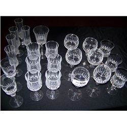 VERY FINE (20) PIECE SET OF ASSORTED MATCHING GLASSWARE, INCLUDING WINE GLASS, FLUTES, AS SHOWN