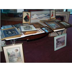 MASSIVE WHOLESALE DEALERS (45+) PIECE FRAMED ARTWORK & COLLECTIBLE LOT. EVERYTHING ON & UNDER TABLE