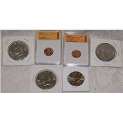 (6) PIECE UNITED STATES COIN LOT INCLUDING (2) MS 70 LINCOLN CENTS, 1996-P CENT, (3) IKE HALVES