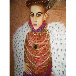 WILLIAM VERDULT "PRINCE OF ENGLAND" BEJEWELED ORIGINAL PAINTING ON PANEL, PREV. APPRAISED $275,000.