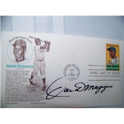 JOE DIAMAGGIO HAND SIGNED POSTCARD ON JACKIE ROBINSON 1ST DAY ISSUE POSTCARD W/ STAMP