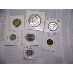 LOT OF (7) CHOICE & COLLECTIBLE UNITED STATES COINS INCLU (3) DOLLAR COINS, SEATED DIME, MERC. HEAD+