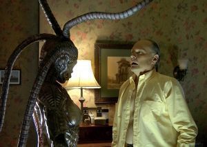 This is the SCREEN USED & MATCHED SIL victim head and bust she kills with her tentacles in SPECIES 3. There are 2 holes in the upper forehead area because 2 of her 4 dread tentacles were used in the scene. I have included the closest possible Screen Shot, and an image of the official Ghana movie poster which depicts the specific scene.