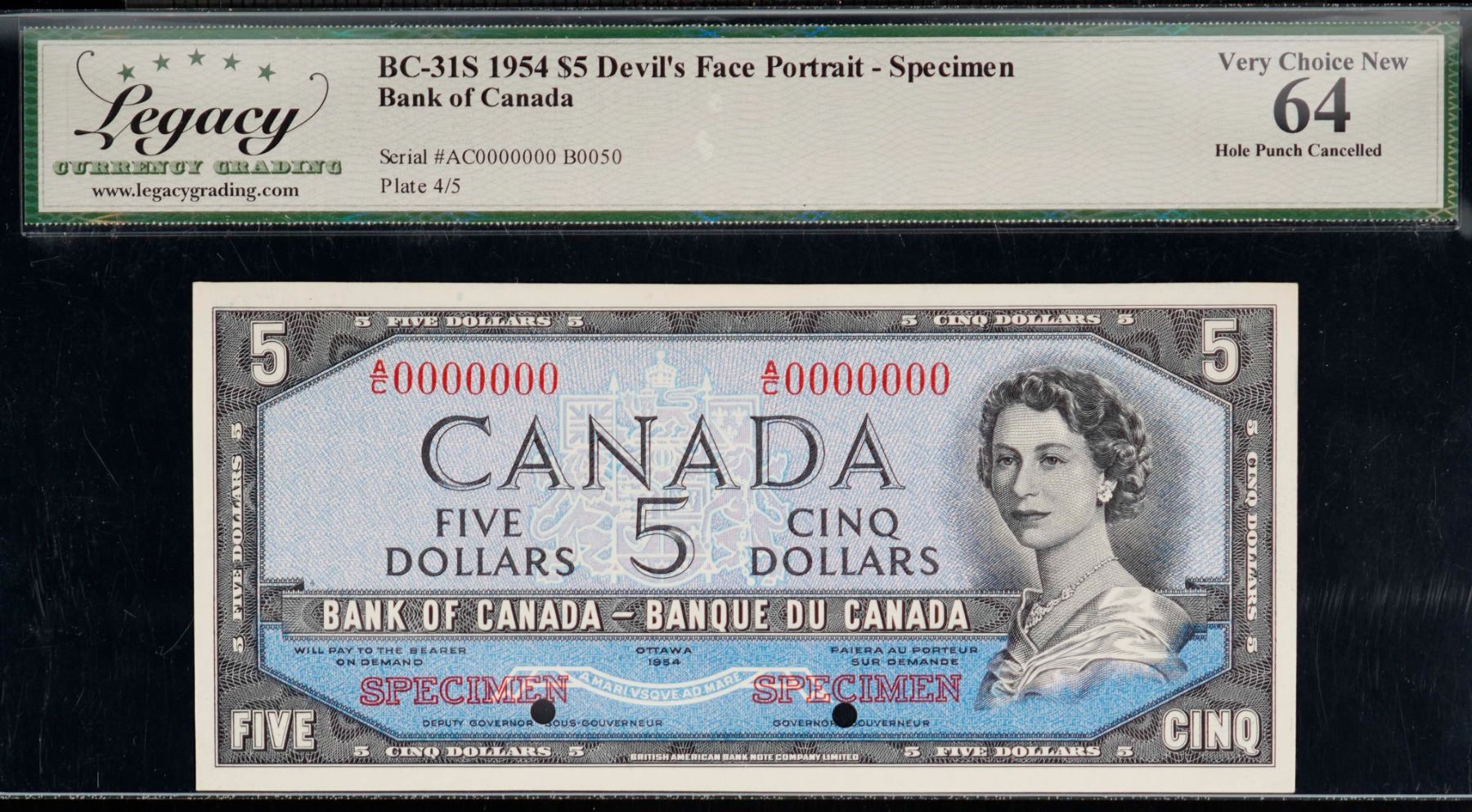 SPECIMEN 1954 $5 BC-31S "A/C0000000" SPECIMEN - B0050 Legacy Choice Uncirculated-64.