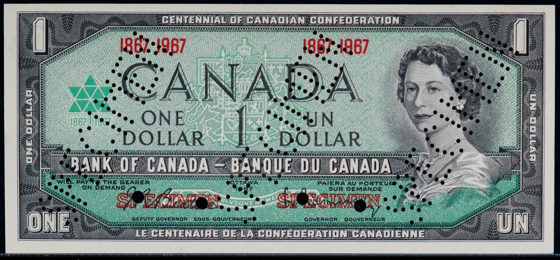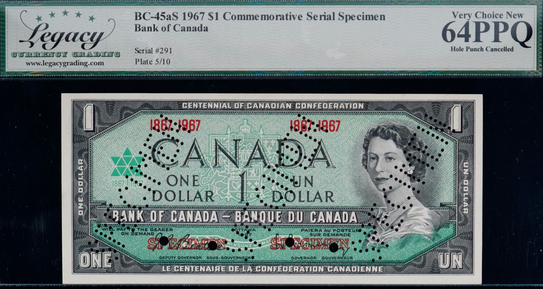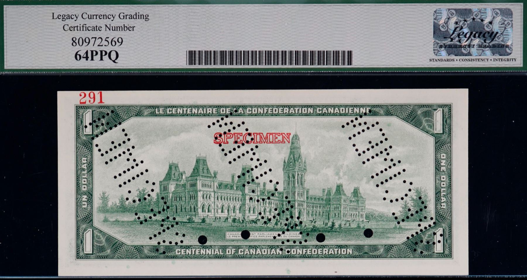 SPECIMEN 1967 $1 BC-45aS "1867-1967" SPECIMEN - B291 Legacy Choice Uncirculated-64PPQ.