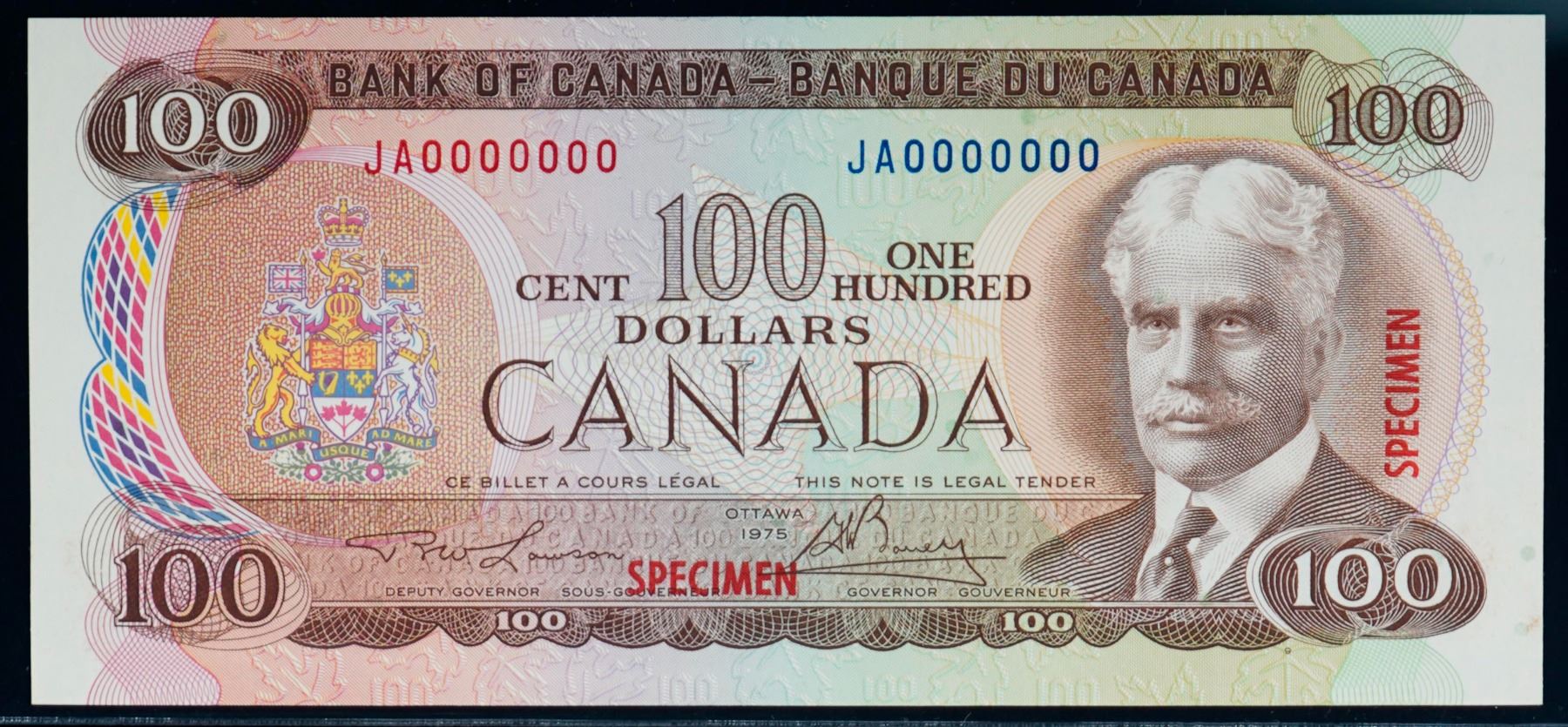 SPECIMEN; 1975 $100 #JA0000000 BC-52aS Uncirculated or better