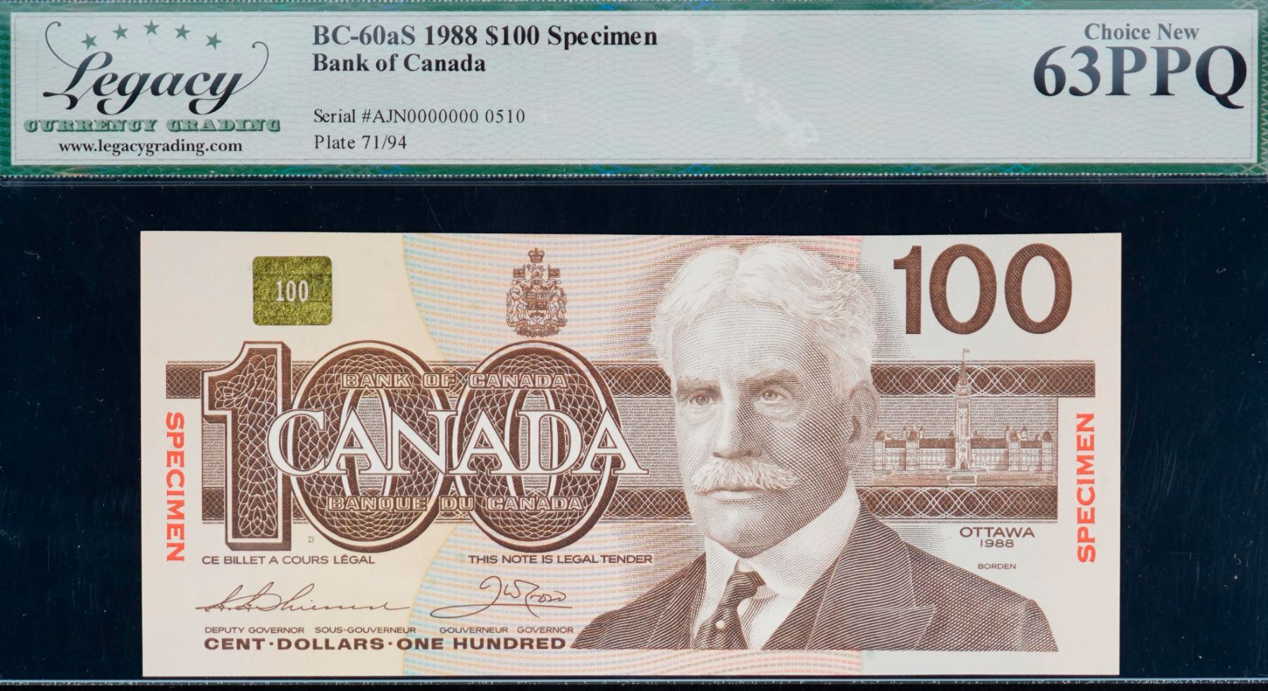 The cataloguer has taken every reasonable measure to ensure that all of the lots in this sale are as described and genuine. All raw coins and banknotes have been graded by the cataloger or the auction house which represent our best professional opinion. To grade coins and banknotes, we use Canadian grading standards, 42 years of experience and good conscience. However, grading is a subjective description in the opinion of the cataloger or the auction house. Among experts there are often differences of opinion on the grading and the eye appeal of a coin. The strike and the state of preservation are often debated. The Canadian Numismatic Company acts as an agent between consignors and buyers. The Canadian Numismatic Company does not guarantee that any coin or banknote cataloged will meet the standards, or the grade, of any third party grading companies. No warranty, whether impressed or implied. Items are as is, no warranty given. We cannot accept responsibility and waive all liability resulting in financial losses, and or incidentals accruing from the sale of any items, nor can we guarantee that items graded by third party services will grade the same if submitted to a different grading service or re-submitted to the same company. Statements by The Canadian Numismatic Company regarding the condition, the eye appeal, the strike and the population of items are for guidance only. All lots offered are sold "AS IS". Title to all lots remains with the auction house until paid for in full by the purchaser. But they are held at the risk of the purchaser once the time of the sale.