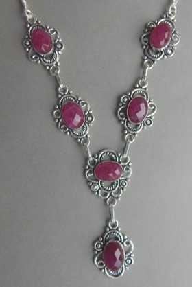 SPECTACULAR 71 CT NATURAL RUBY NECKLACE. MOUNTED IN .925 STERLING SILVER PLATE OVERLAY. 20 " LONG . 175.50 CTTW
