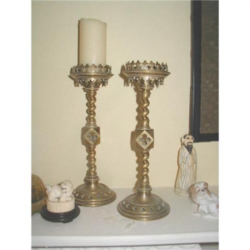 BURTON BROOK FARM ANTIQUES presents a grand pair of heavy solid brass Aesthetic Movement 10 1/2" tall candlesticks. This stunnung pair have a classic Aesthetic Movement design and are a great addition to any collection.