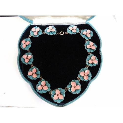 BEAUTIFUL AND VERY UNIQUE ANTIQUE NECKLACE,DEPICTING LOVELY ENAMEL FLOWERS, as per images - Measuring about 16 1/4 inch long, US Buyer please remit 7.00 for shipping plus insurance.THANKS.