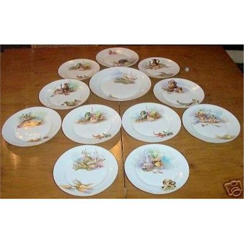 A TRULY SPECTACULAR LIMOGES 12 PIECE HAND PAINTED ARTIST SIGNED by GUERING ...PLEASE LOOK AT ALL THE PICTURES. ..IT IS IN OUTSTANDING EXCELLENT CONDITION!!THERE IS NO REPAIRS AT ALL ONLY ONE CHIP PLEASE SEE THE PHOTOGRAPH. THIS SET IS ALSO VERY OLD...LATE 19TH CENTURY TO VERY EARLY 1900s...ALL 12 PIECES ARE MARKED ON THE BOTTOM W.GUERING PARIS LIMPGE FRANCE. WHAT ALSO MAKES THIS SET GREAT IS THAT IT HAS 13 DIFERANT SCENES SOME ARE CLOSE BUT ALL SCENES ARE DIFFERANT AND THE DETAIL UNMATCHED IN ARTISTIC VALUE...