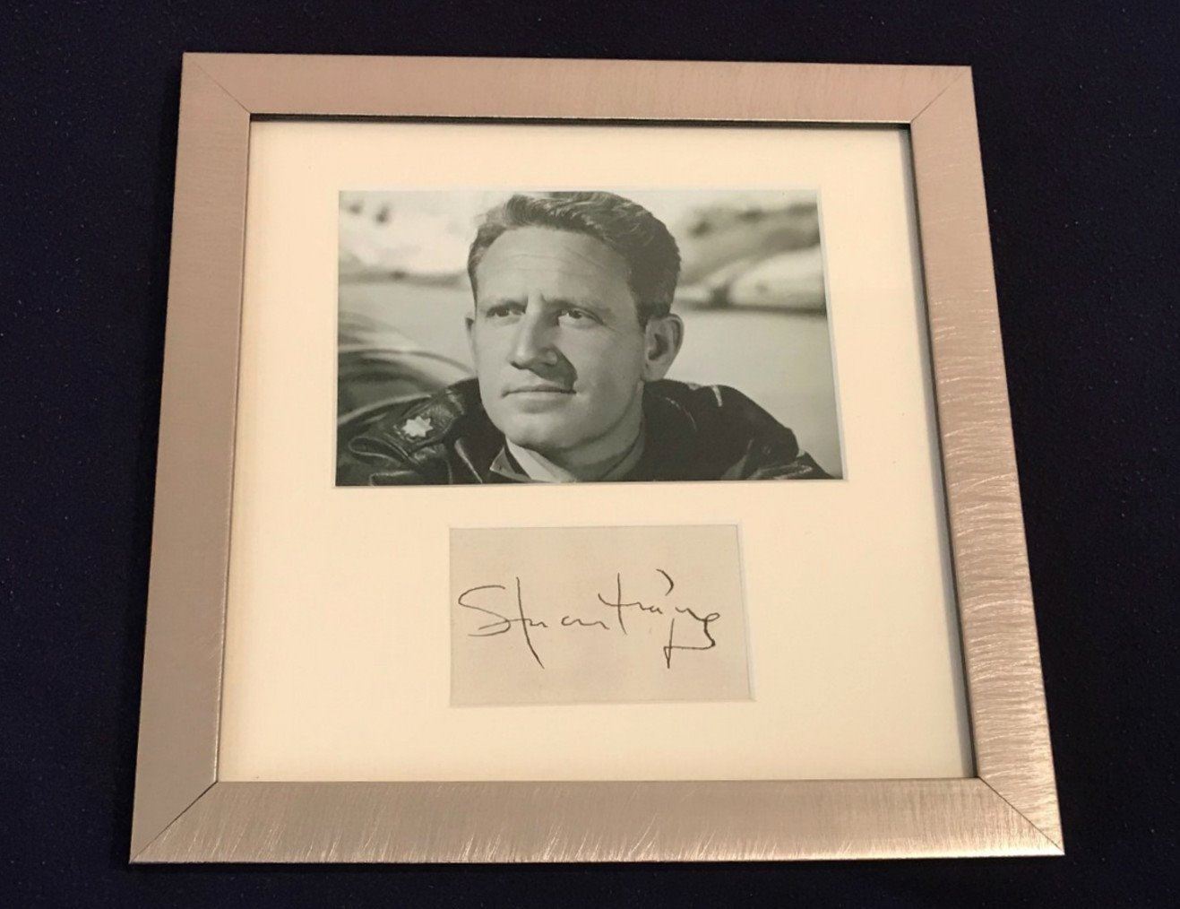 An autographed album page by Spencer Tracey. One of Hollywood's biggest stars during the golden age. Professionally mounted and framed.