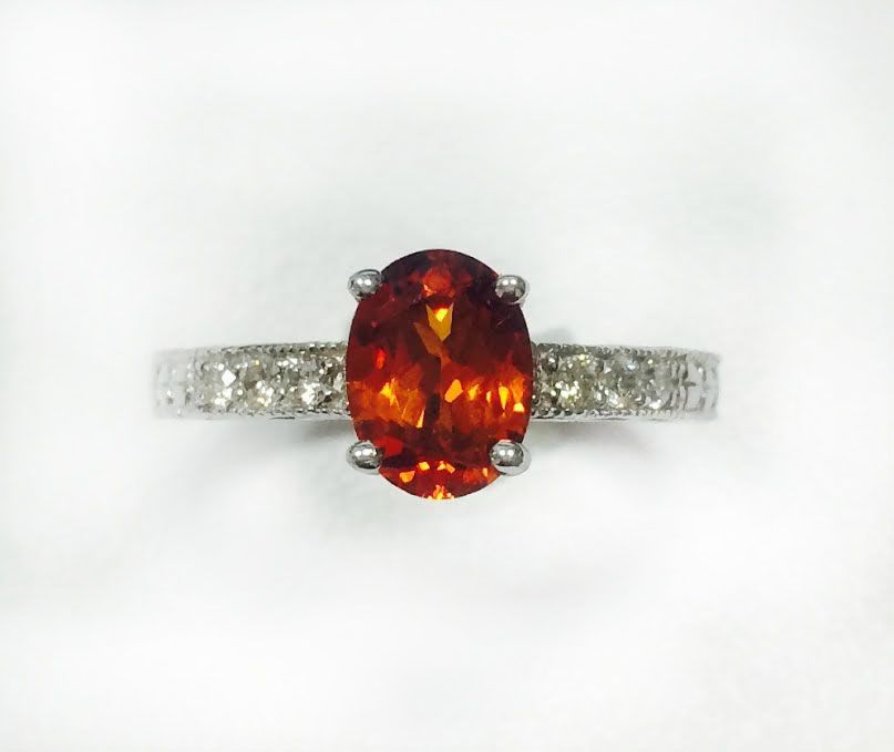 SPESSARTITE 1.30CT, 14K W/G 3.17GRAM / DIAMOND 0.14CT