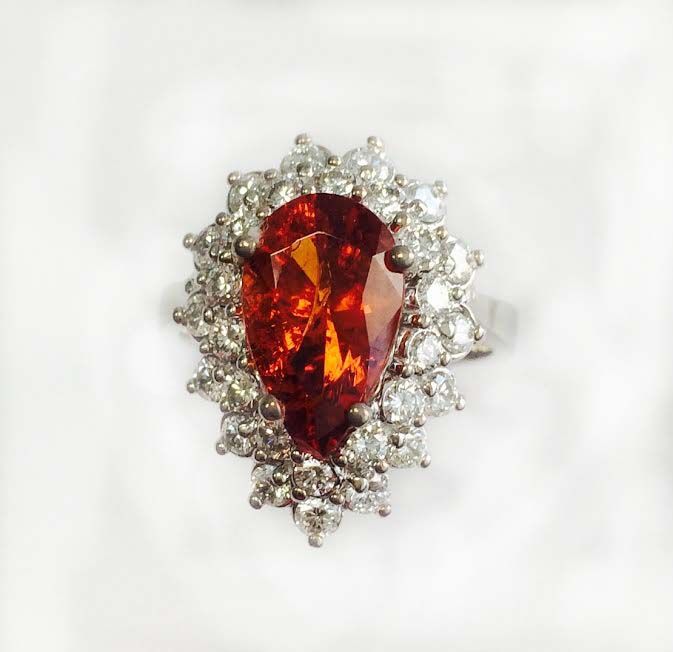 SPESSARTITE Garnet 3.54CT, 14K W/G RING 5.07GRAM / DIAMOND RD 1.00CT