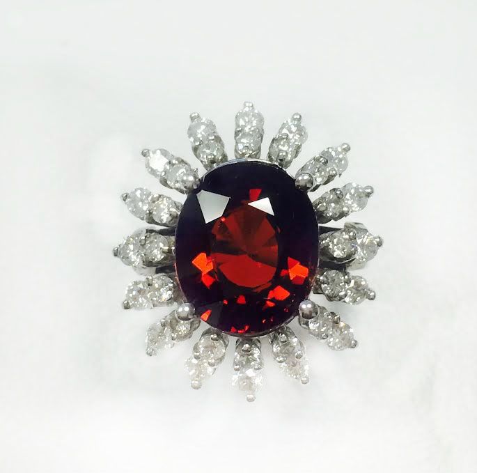 SPESSARTITE Garnet 6.36CT, 14K W/G RING 5.95GRAM / DIAMOND 1.00CT