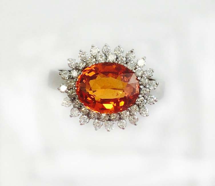 SPESSARTITE OVAL 3.52CT, 14K W/G RING 4.26GRAM / DIAMOND RD 0.52CT