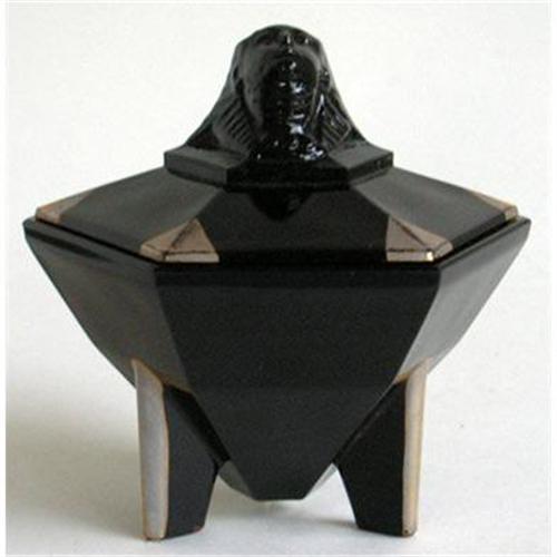 <tr><td>Title:SPHINX Art Deco Black Amethyst Glass Powder Jar</td></tr>