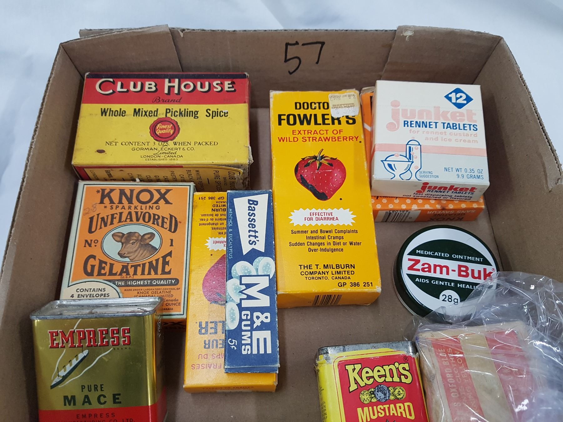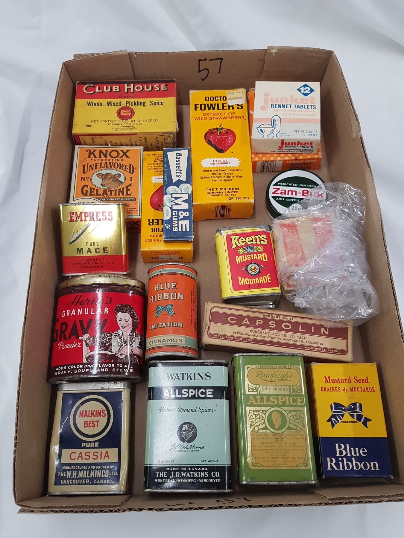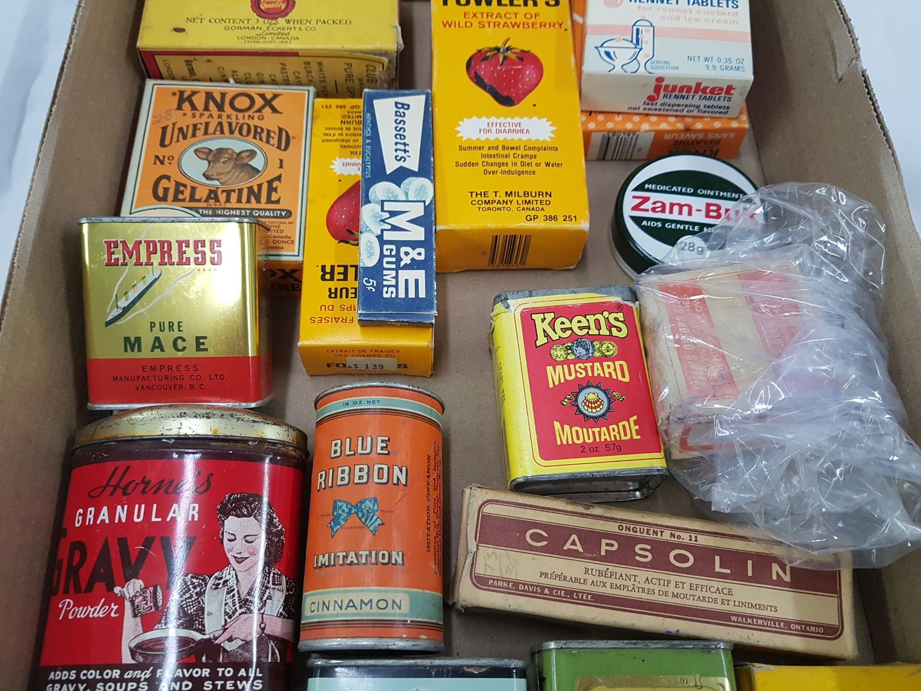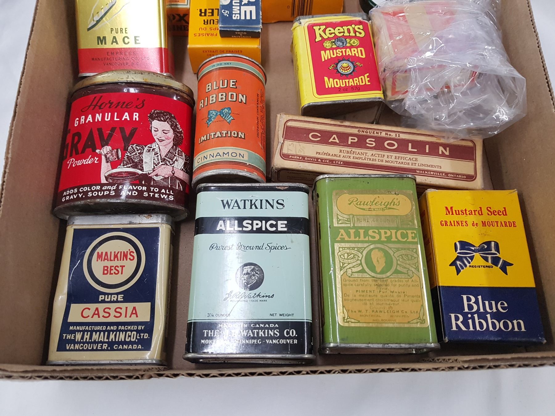 SPICE TINS, MEDICINE BOTTLES ETC. (FULL BOX)