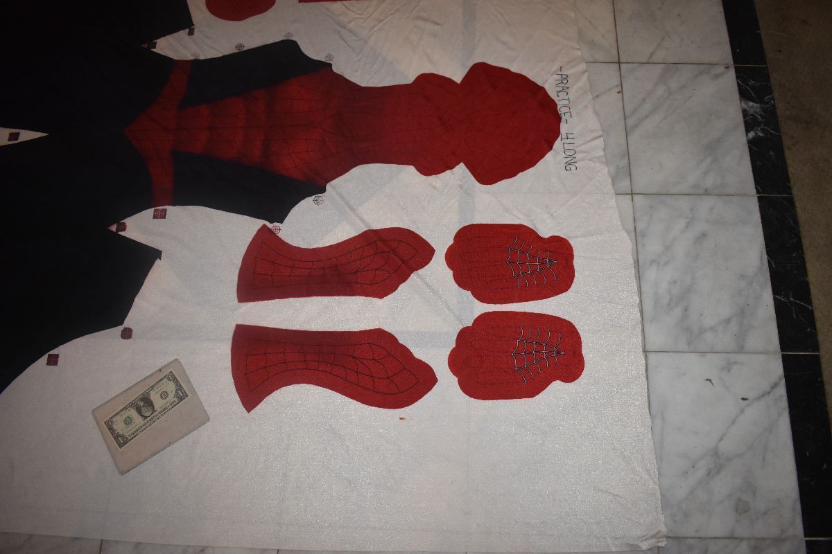 This is a complete uncut sheet of SPIDER-MAN 2 suit used to develop the suits for SPIDER-MAN 3. Marked #4!